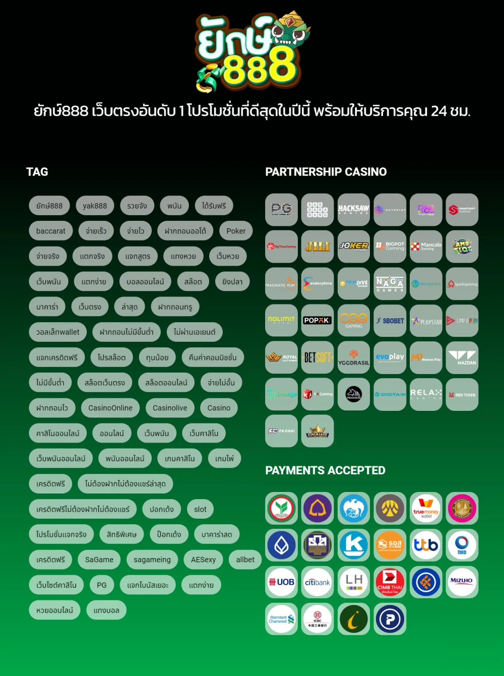 ยักษ์888 เป้นเว็บเดิมพันออนไลน์ ที่ตอบโจทย์ทั้งความบันเทิงและโอกาสในการสร้างรายได้ หนึ่งในแพลตฟอร์มที่ได้รับความสนใจคือการออกแบบระบบมาให้ผู้เล่นใช้งานได้ง่ายและเข้าถึงได้ทันที ไม่ว่าจะเป็นผู้เล่นหน้าใหม่หรือผู้มีประสบการณ์ โดยจุดเด่นที่ทำให้Yak888 ต่างจากแพลตฟอร์มอื่นคือความเป็นมิตรต่อผู้ใช้งาน ระบบเสถียร รองรับทั้งคอมพิวเตอร์ แท็บเล็ต และสมาร์ตโฟน ทำให้สามารถเล่นได้ทุกที่ทุกเวลาโดยไม่ต้องดาวน์โหลดแอปพลิเคชันเพิ่มเติมหน้าเว็บไซต์ของYak888 ถูกออกแบบให้เรียบง่ายและจัดวางเมนูอย่างเป็นระบบ ทำให้ผู้เล่นค้นหาเกมและฟังก์ชันต่าง ๆ ได้อย่างรวดเร็ว ตั้งแต่การสมัครสมาชิกไปจนถึงการฝาก–ถอนเงิน ระบบนำทางชัดเจน ช่วยให้มือใหม่สามารถเริ่มต้นเดิมพันด้วยความมั่นใจ ไม่ต้องเสียเวลาเรียนรู้ขั้นตอนซับซ้อน ทั้งยังมีการอัปเดตระบบอย่างสม่ำเสมอเพื่อรักษาความเสถียรและประสบการณ์การเล่นที่ราบรื่นยักษ์888 เป็นศูนย์รวมเกมเดิมพันที่หลากหลาย ตอบโจทย์นักเดิมพันทุกรูปแบบภายในที่เดียว ไม่ว่าจะเป็นสล็อตออนไลน์ที่มีให้เลือกมากมายพร้อมกราฟิกสวยงามและโบนัสที่ดึงดูดใจ คาสิโนสดที่ถ่ายทอดสัญญาณจากบ่อนจริงให้ความรู้สึกสมจริง เกมสล็อตและเกมยิงปลาที่ออกแบบให้เล่นสนุกและมีอัตราจ่ายที่น่าสนใจ รวมถึงการแทงกีฬาและการเดิมพันบอลสดที่อัปเดตราคาน้ำอย่างรวดเร็ว ตลอดจนฟีเจอร์เสริมที่ช่วยให้การเล่นไม่น่าเบื่อและมีโอกาสสร้างกำไรมากขึ้นหนึ่งในปัจจัยที่ทำให้ผู้เล่นวนกลับมาใช้บริการYak888 คือโอกาสในการได้รับรางวัลแจ็คพอต ซึ่งได้รับการออกแบบมาให้มีโอกาสแตกบ่อยขึ้นเมื่อเทียบกับบางแพลตฟอร์ม ผู้เล่นไม่จำเป็นต้องลงเดิมพันสูงเสมอไปก็สามารถลุ้นรางวัลใหญ่ได้ ระบบเกมและอัลกอริธึมถูกปรับแต่งให้มีความยุติธรรมและโปร่งใส ทำให้ผู้เล่นมั่นใจได้ว่าโอกาสชนะมาจากการเล่นที่ดีและโชคส่วนตัวด้านการเงินYak888 ให้ความสำคัญกับความปลอดภัยและความรวดเร็วของการทำธุรกรรม รองรับการฝาก–ถอนผ่านธนาคารชั้นนำและวอลเล็ทต่าง ๆ ทำให้เงินเข้าบัญชีผู้เล่นอย่างรวดเร็วและตรวจสอบได้ ระบบรักษาความปลอดภัยของข้อมูลลูกค้าเป็นมาตรฐานสูง ช่วยลดความเสี่ยงจากการรั่วไหลของข้อมูลส่วนบุคคลและการทุจริตทางการเงินเพื่อเพิ่มความคุ้มค่าYak888 ยังมีการจัดโปรโมชั่นและสิทธิพิเศษอย่างต่อเนื่อง ทั้งโบนัสต้อนรับสำหรับสมาชิกใหม่ โบนัสเติมเงินรายวัน กิจกรรมแจกเครดิตฟรี และโปรคืนยอดเสีย ซึ่งทุกโปรโมชั่นถูกออกแบบมาเพื่อเพิ่มโอกาสในการเดิมพันและช่ว